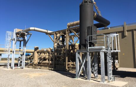 | Construction involved a new ground up compressor station consisting of three new compressors, new electrical service, new EEC building, new slug catcher, three new drain tanks, and two runs of 12-stand, fiber optic cable running five miles to the Ramsey plant. |